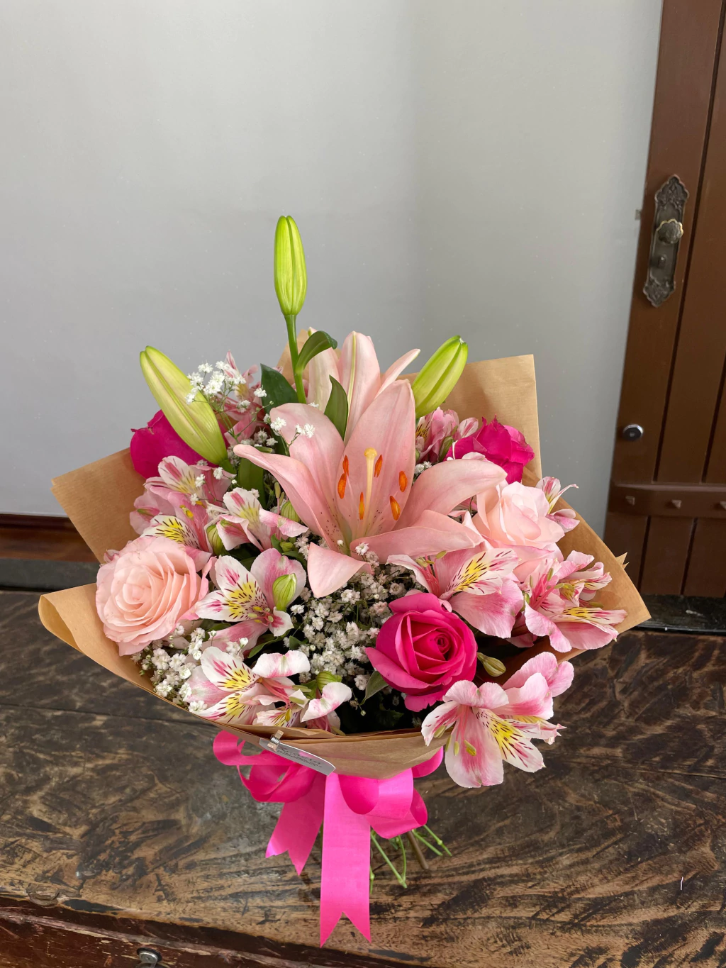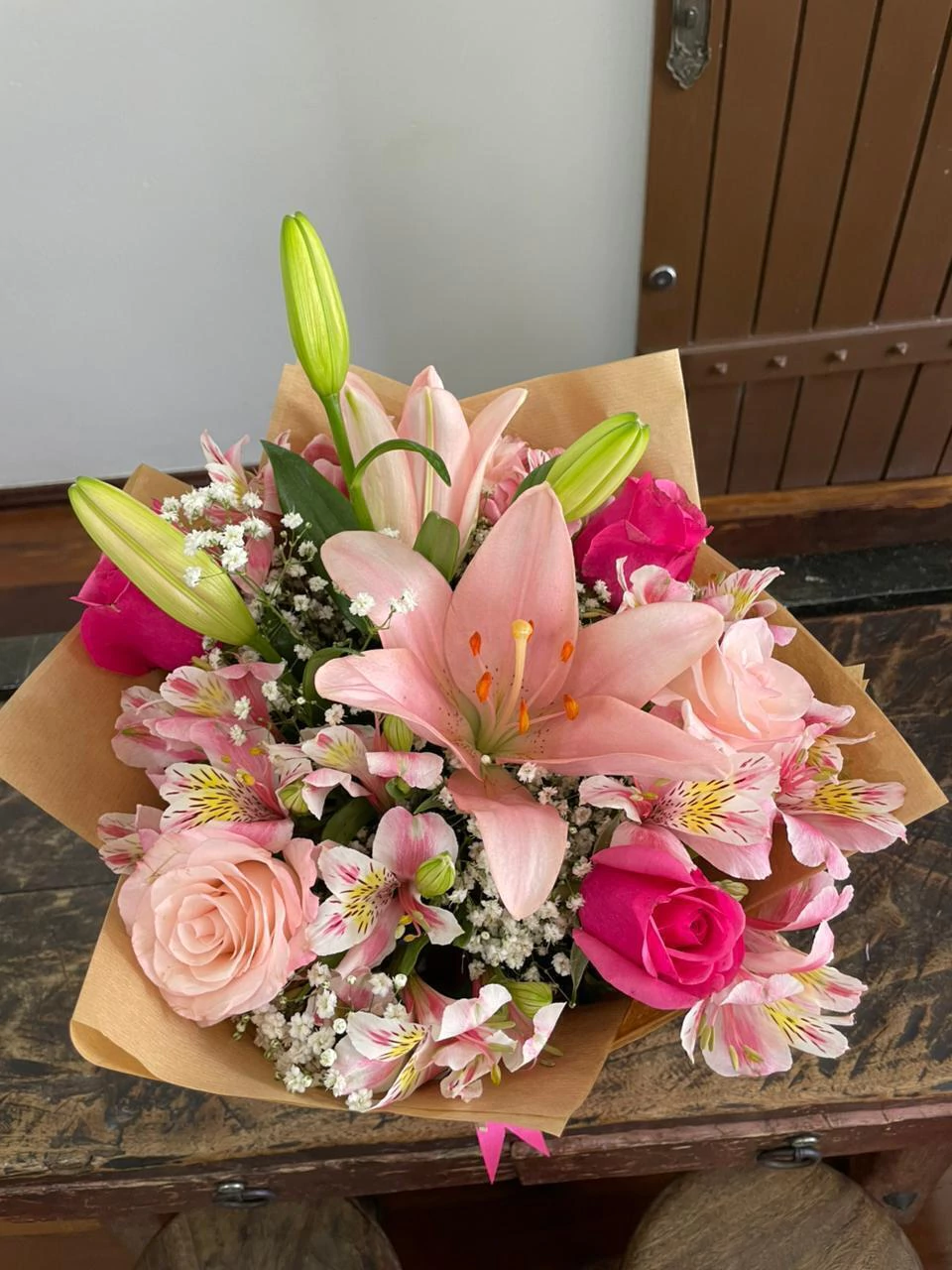 Descubra a sofisticação do Buquê Elegância, uma combinação perfeita de rosas e lírios que exala charme e delicadeza.
