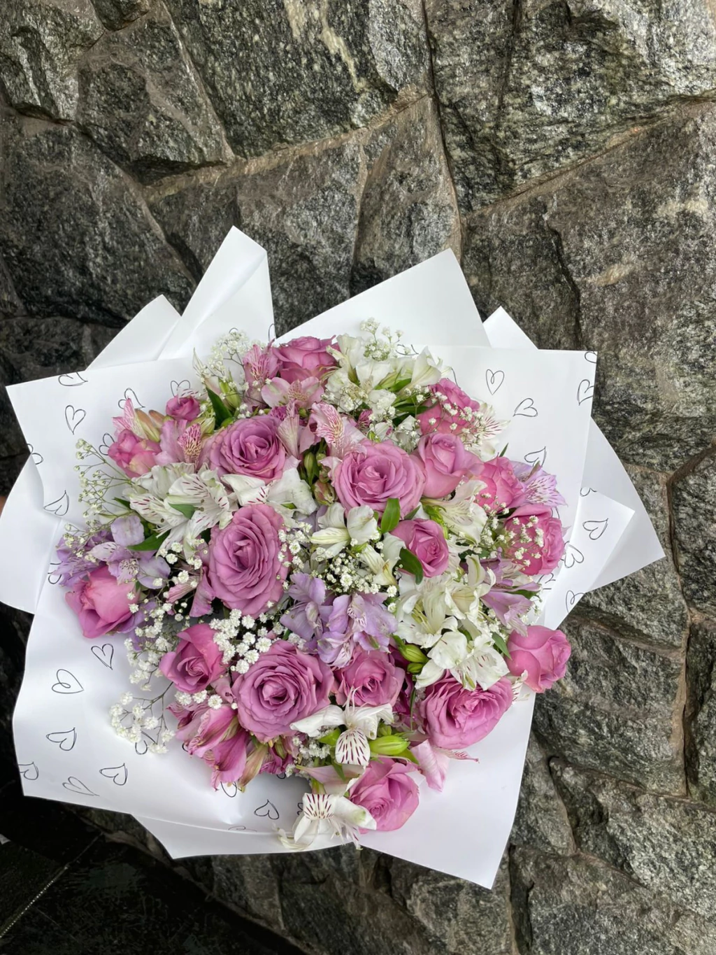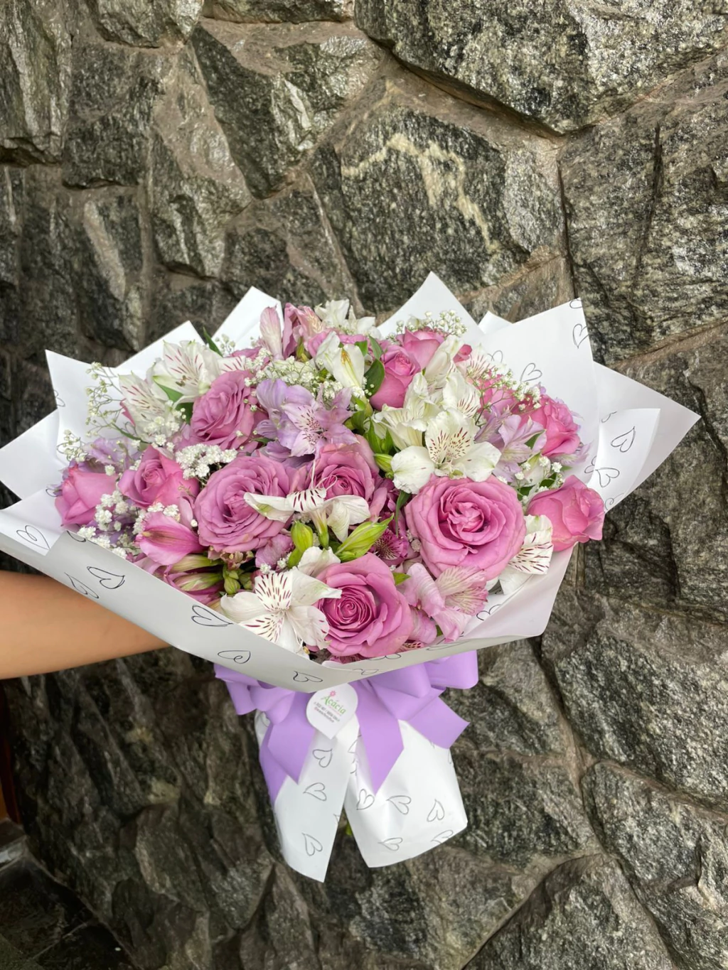Descubra a delicadeza e sofisticação do Buquê Maria Alice, composto por 15 rosas lilás cuidadosamente selecionadas para transmitir emoção e charme.